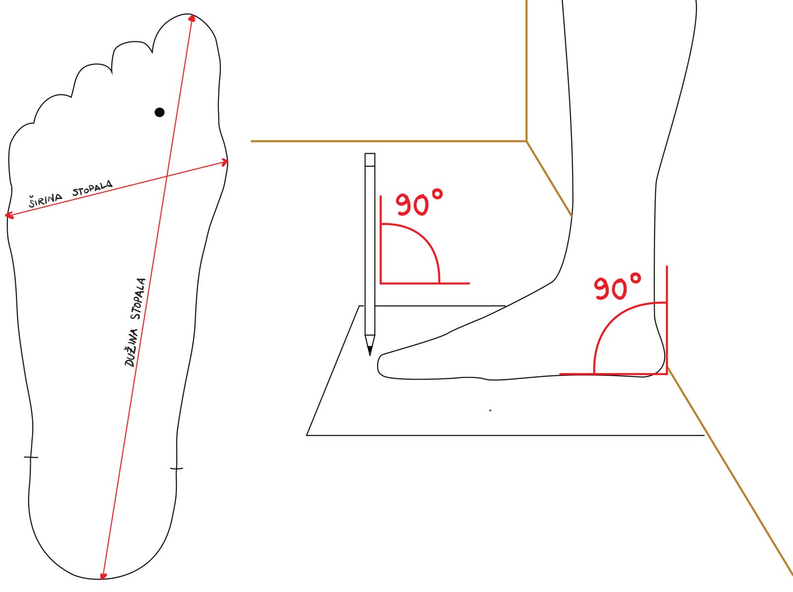 📄 Pogledajte grafički prikaz za ocrtavanje stopala i koristite ga kao vodič za precizno mjerenje.