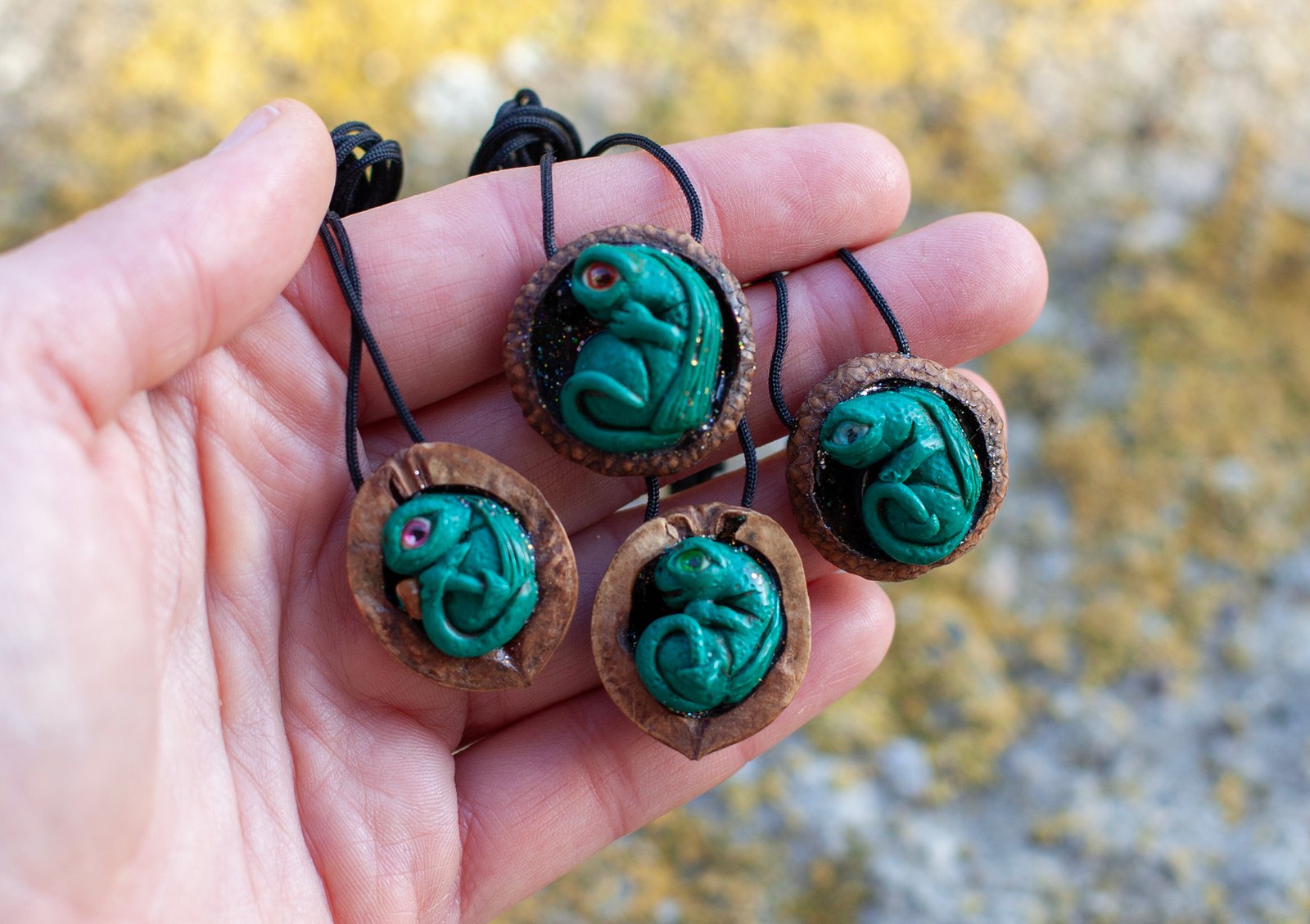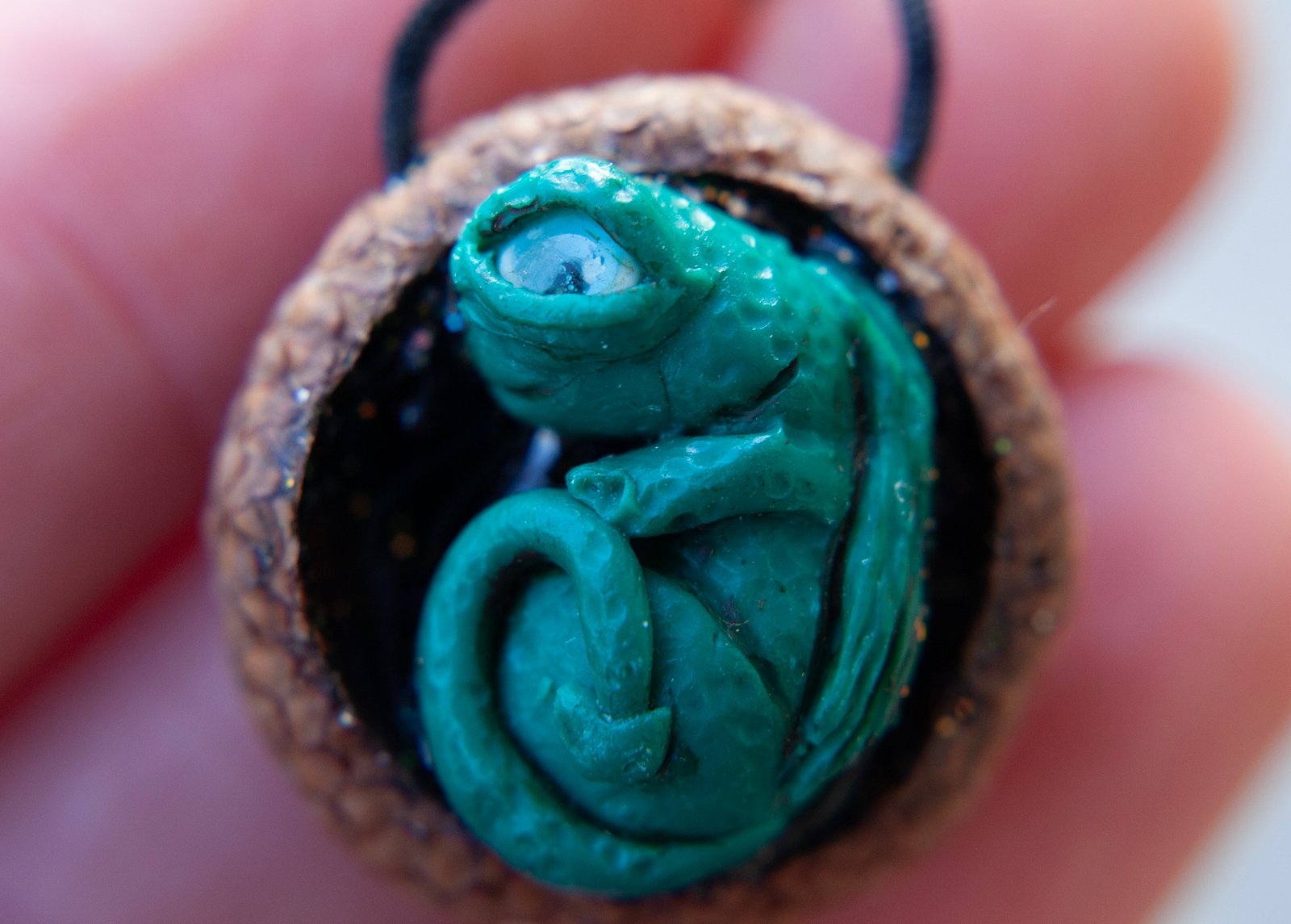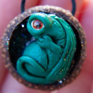 Ručno modelirani zmajevi u ljusci oraha ili žirevoj kapici.