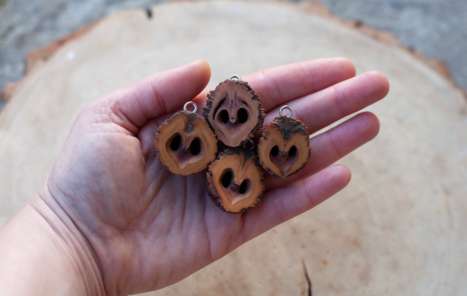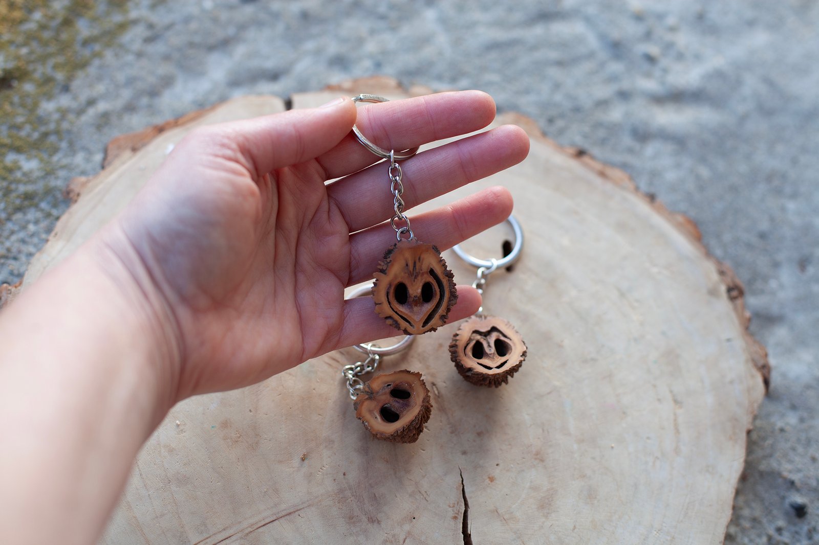 Crni orah prirodna zviždaljka kao ogrlica ili privjesak za ključeve.