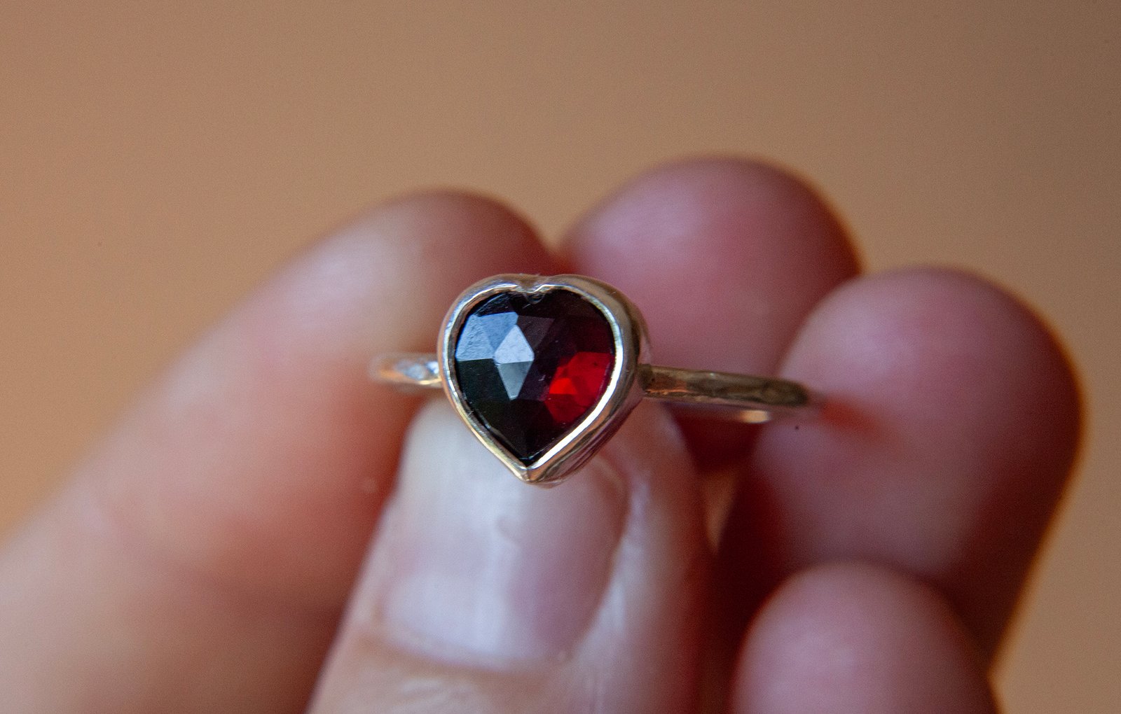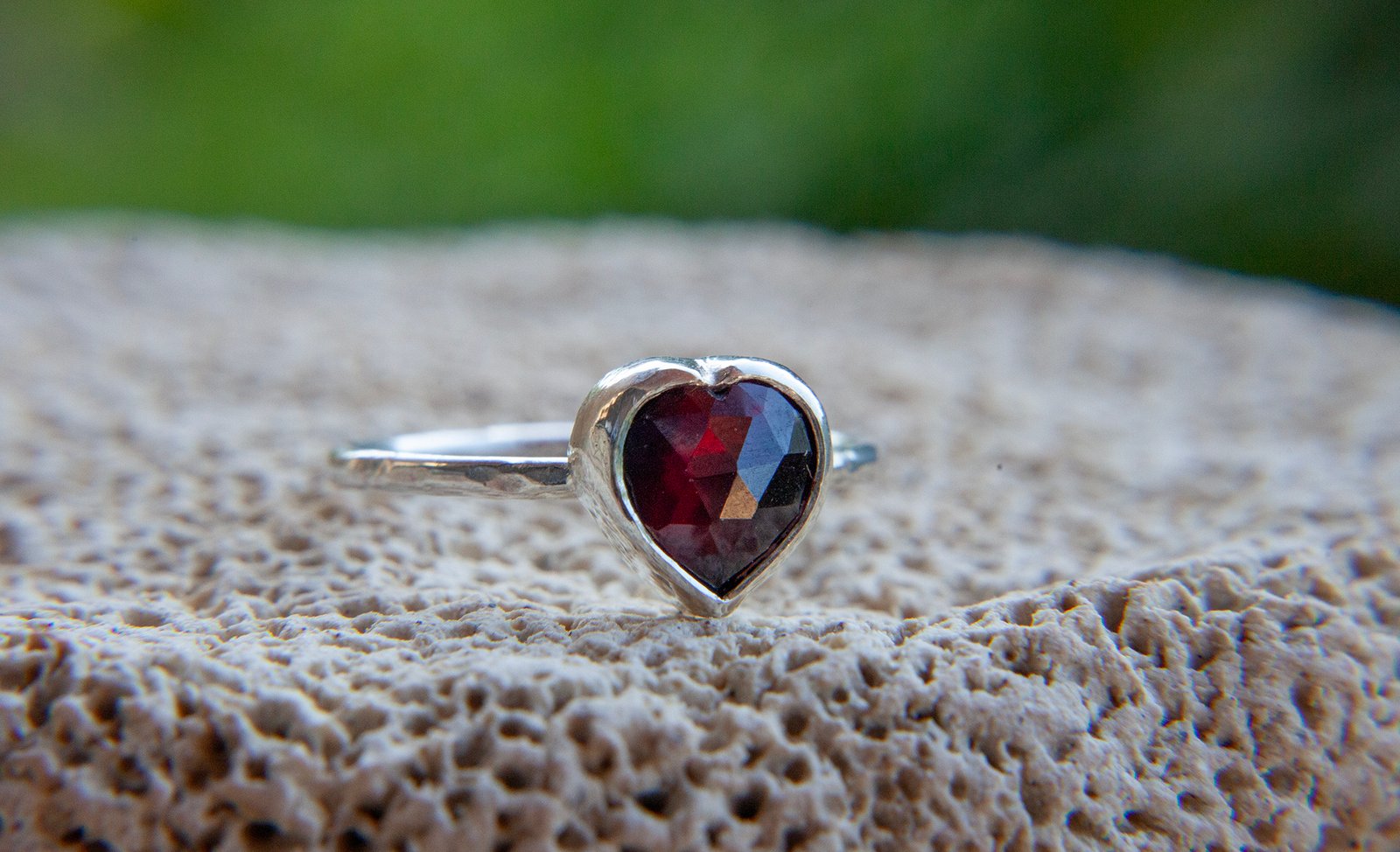 Dizajn prstena omogućuje da se lako kombinira s drugim komadima nakita, a srcoliki granat čini ga savršenim simbolom ljubavi – idealnim kao osobni dar ili pažljivo odabran poklon za voljenu osobu.