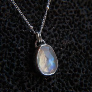 Ručno rađena srebrna ogrlica sa mjesečevim kamenom koja kombinira srebro 925 i čisto srebro 999.