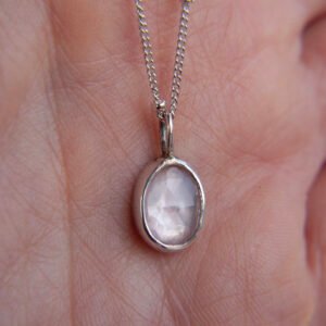 U središtu ogrlice nalazi se ružičasti kvarc u rose cut rezu.