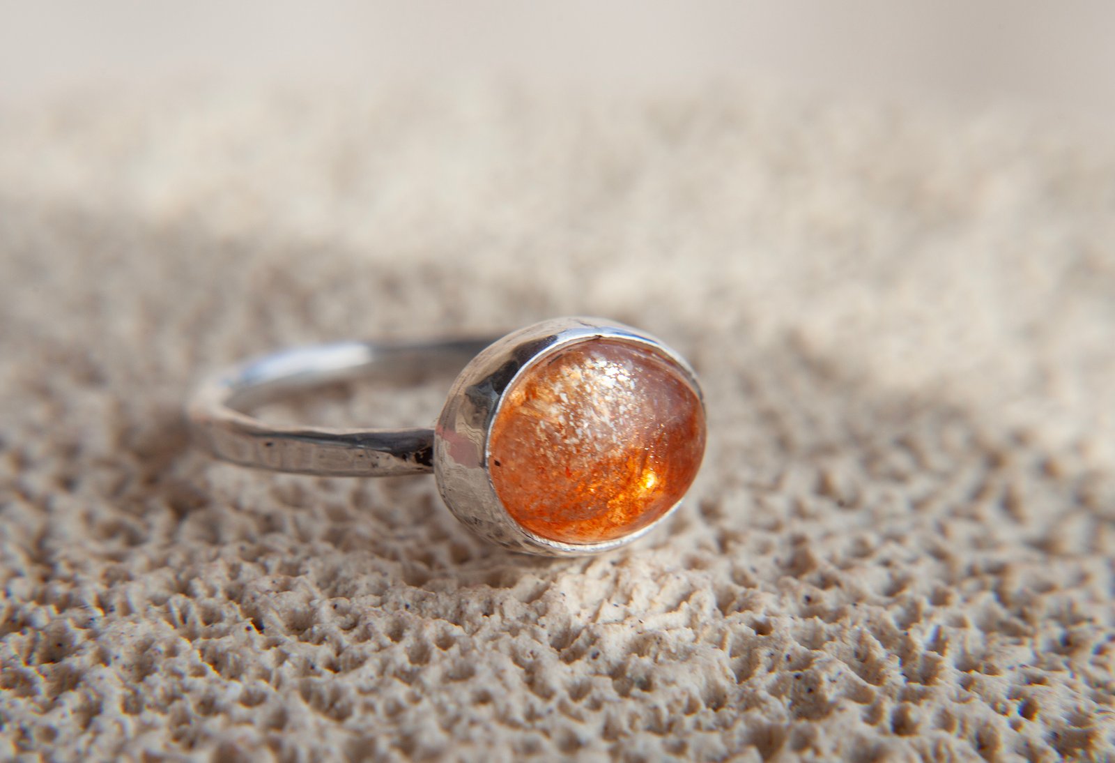 Ručno izrađeni srebrni prsten sa sunčevim kamenom u srebru 925 i čisto srebru 999. Svaki komad nakita izrađen je pažljivo ručnom izradom, što ga čini potpuno jedinstvenim.